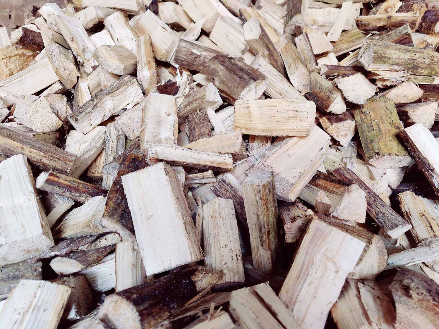 Wir produzieren, lagern und verkaufen in Schüttraummetern. Dies entspricht 1 m³ lose geschüttetem Kaminholz.
