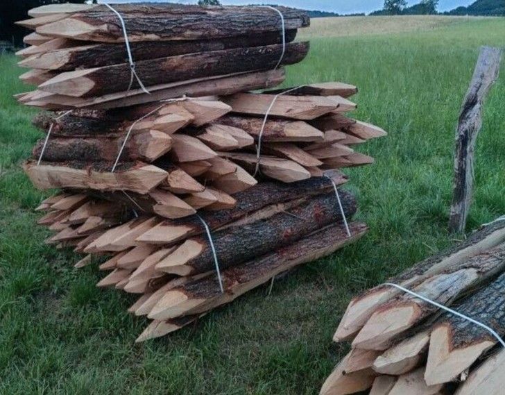 Wir verkaufen Eichenpfähle aus dem eigenen Wald.