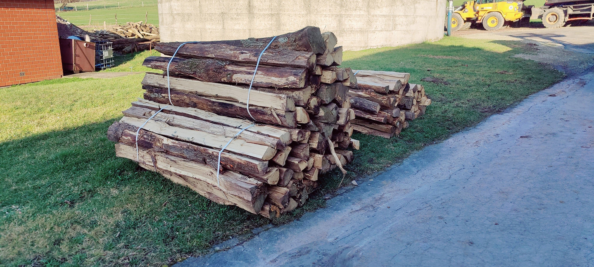 Die gesägten Pfähle aus Eiche oder Lärche/Douglasie werden in einem 12x12cm Raster gesägt und können auf Wunsch bis zu 300 cm lang sein.